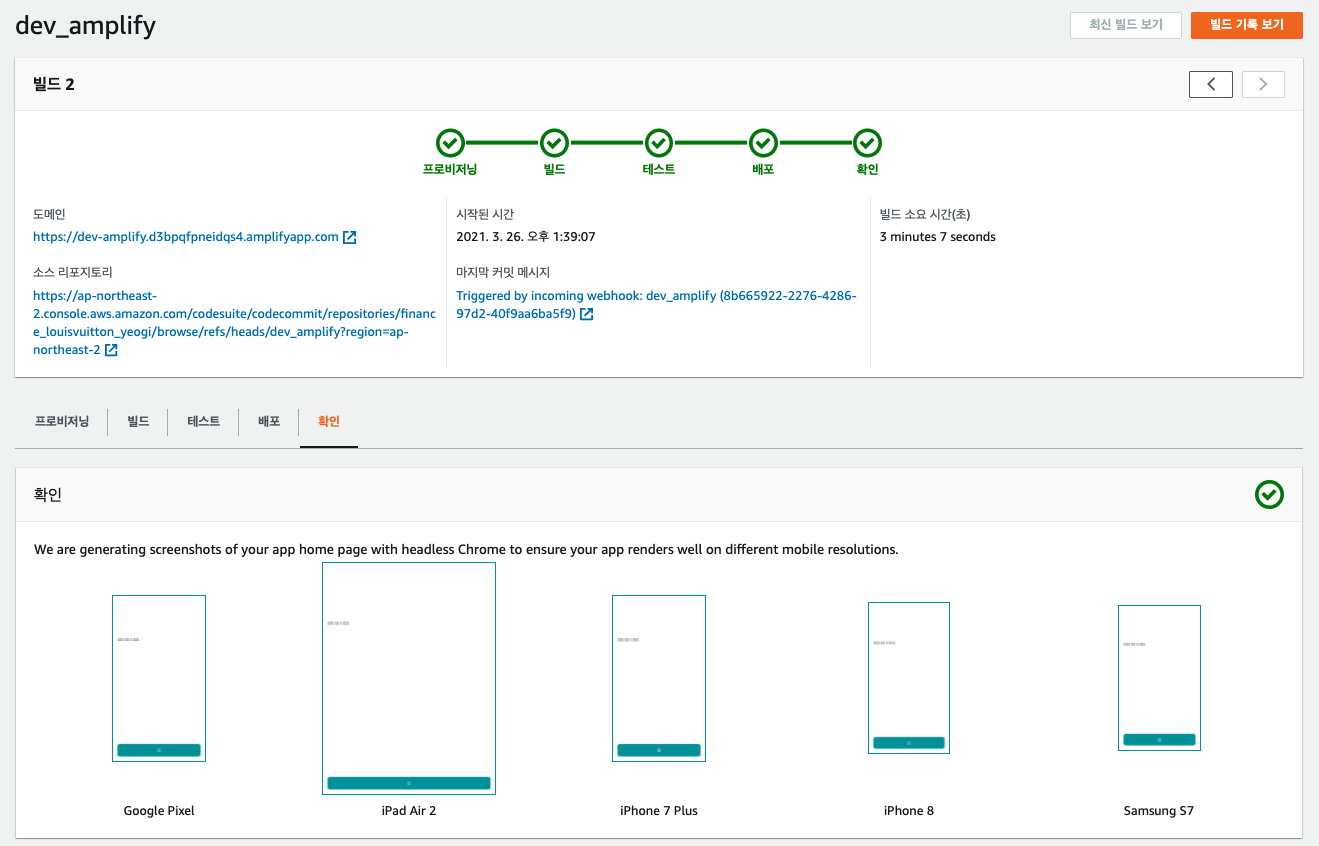 빌드과정은 상단 이미지의 빌드 탭에서 로그로 확인 가능하다.