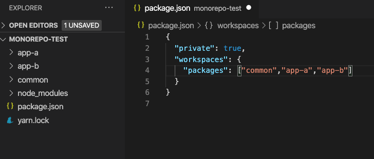 workspaces 밑에 packages에 모노레포구조로 구성할 디렉토리를 지정해주면 끝난다.