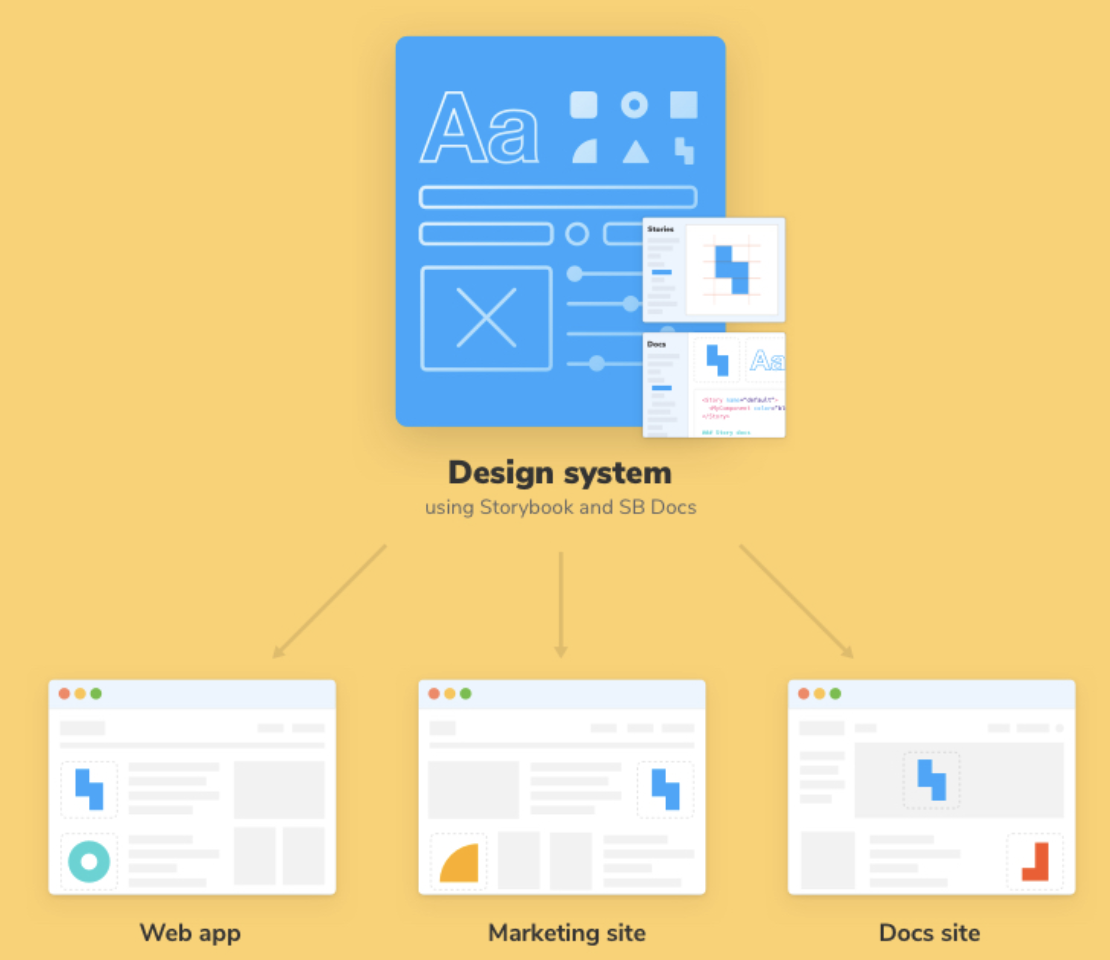 Component Library, Developer Sandbox, Documantation은 Storybook (문서이면서 샌드박스환경), Component Library로 설명할 수 있습니다.