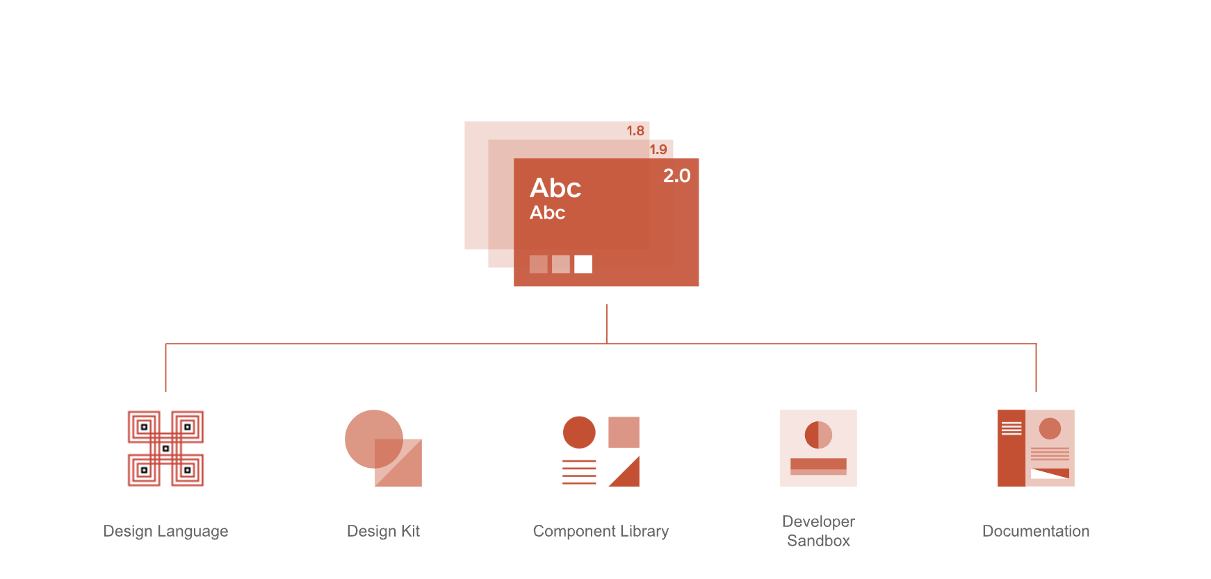 - Design Language - 제품의 시각적 디자인의 기반이되는 타이포그래피, 아이콘, 여백, 디자인 토큰등을 정의 합니다. 개발자와 UX디자이너 사이에 용어의 통일 역시 필요합니다. ( product의 근본이 되며 Design Token을 통해 관리됩니다. 디자인 토큰 - ex) $red = (255,0,0) )